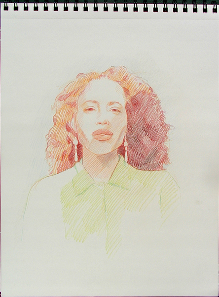 A while ago, I did a series of colored pencil drawing based on photos in a book about red haired people. I was searching for a subject, and was looking for some photos of interesting looking people who were not celebrities. Here’s the first of the series.