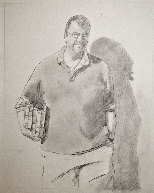 I then printed out the photo, but left it lying as I wasn’t sure it was the ‘right’ pose and setting for a portrait of Grahame.