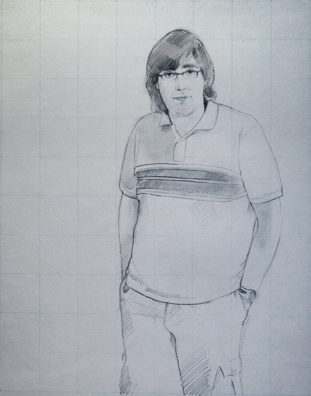 Then I was rooting thru some photos I took last summer, and found this pose, in which (I think) Fred looks at ease. I think I originally rejected this pic because it was taken in shade, with no strong contrasts or highlights. Looking at it this morning, I realized it would be hard to capture Fred looking more comfortable, so I printed out the photos and took to my studio.