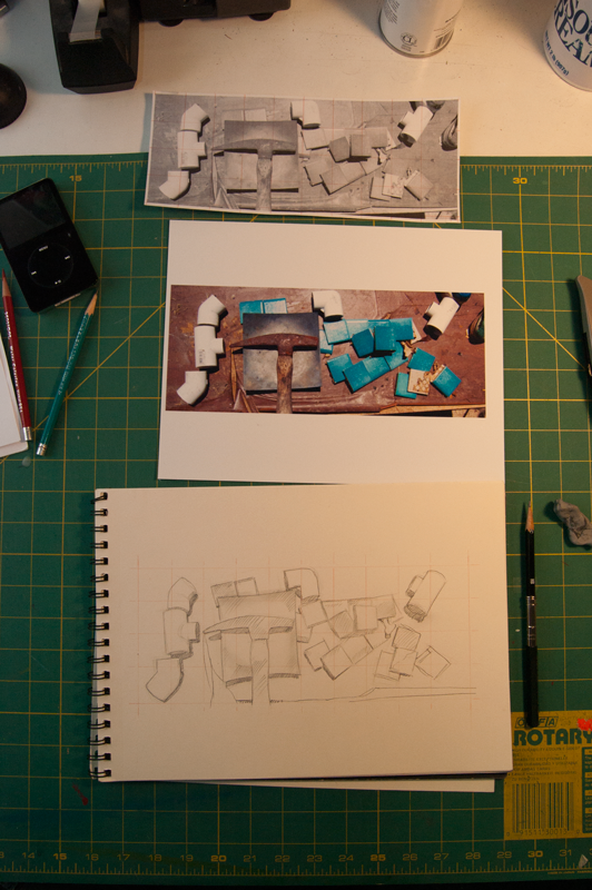 Not sure from this first drawing if this is worth painting. I think I need to play with the composition elements, take a few more pics and re-evaluate. Maybe it’s a good idea, I just need to spend more time on the layout.