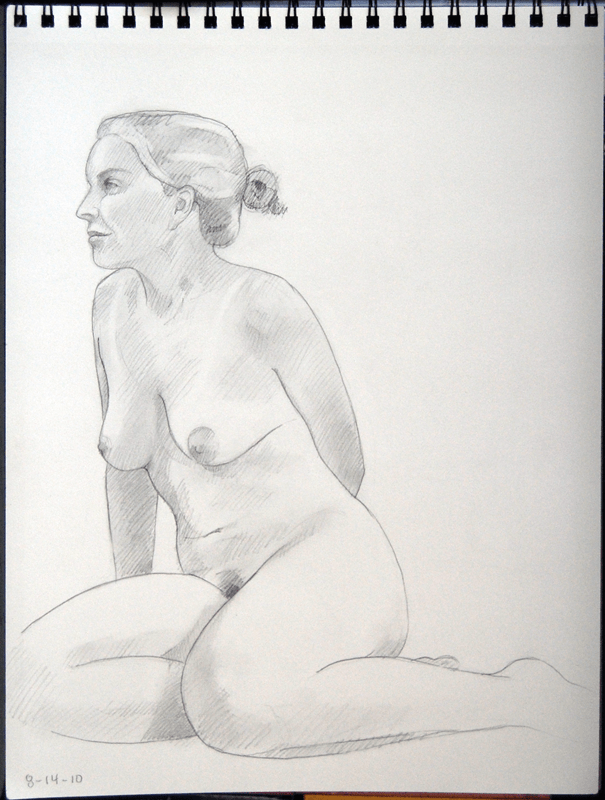 That changed yesterday.  I had the opportunity to bring pad and pencils to Dr. Peter Schmid’s studio, where he invites other artists to join him with models to scupt and draw.