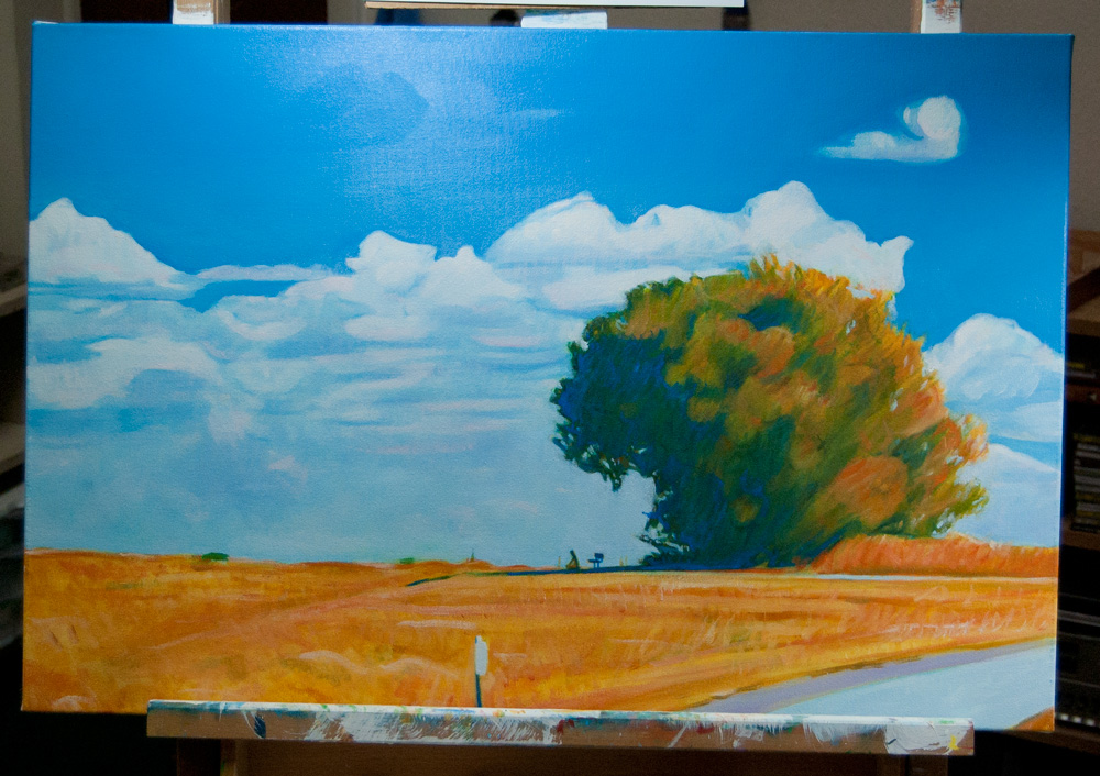 Refining the View The View - in progress Still plugging and painting away on this landscape. I think the foreground is starting to come together. The sky/cloud area needs a bunch of work Share this:PostLike Loading... Related