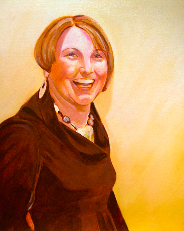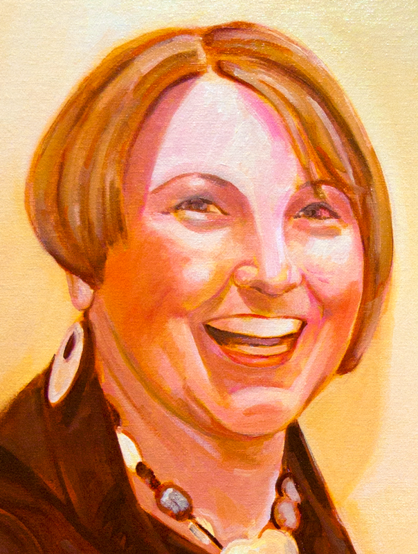 I added and subtracted paint to the face and hair, moving the eye to the left down a bit. Mixing in some hot/warm red and orange, I tried to give the head and features depth.