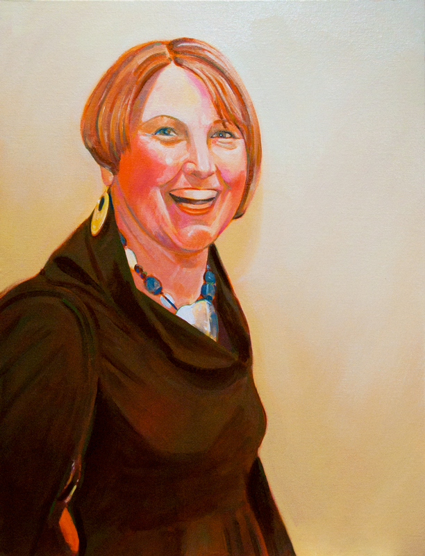 I worked on the clothing area by adding a dark brown wash to the folds and shadows. I then desaturated the background by mixing naples, white and gray and recovering the back.