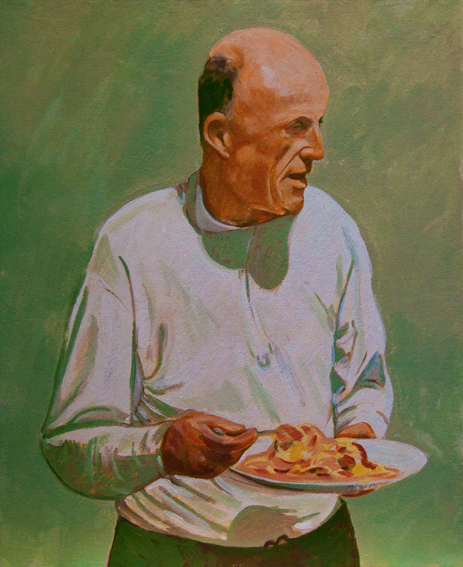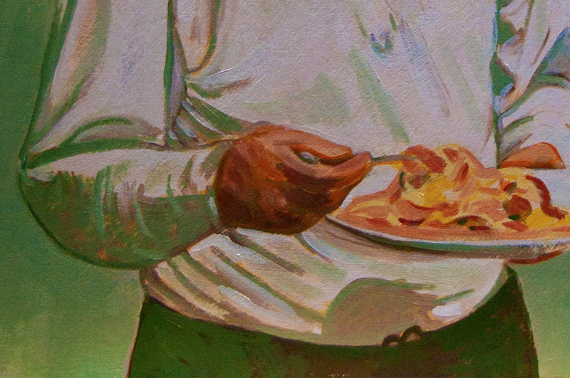 I also worked on the lower portion, the hands and dinner plate. More work is needed in this area, and hopefully I’ll get to it this evening.