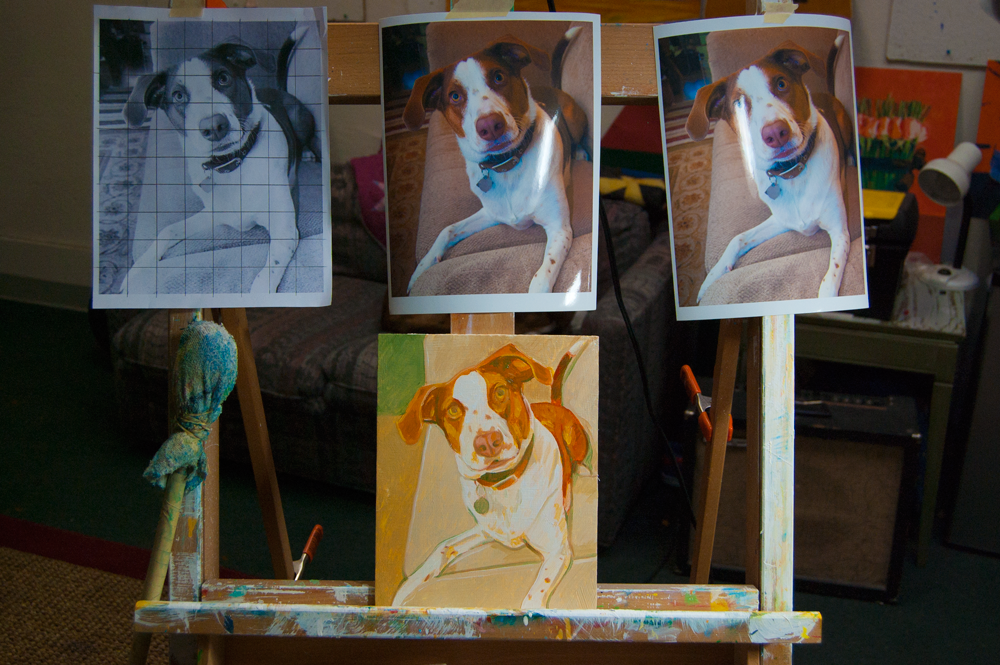 I applied layers of white, unbleached titanium mixed with Indian yellow and terra rosa, orange and naples yellows.