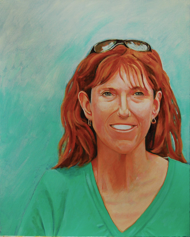 I got in early today, because it was a full schedule of art. Painting, guitar and drawing. I painted first, doing more adjusting on the jawline. I then worked on the hair, layering yellow/orange/browns. I repainted the blouse and neck area.