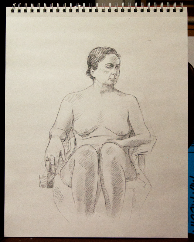 After music, it was time to draw, at Rick’s studio. We mistakenly put the model in an office chair. The chair subtly twisted during the entire pose.