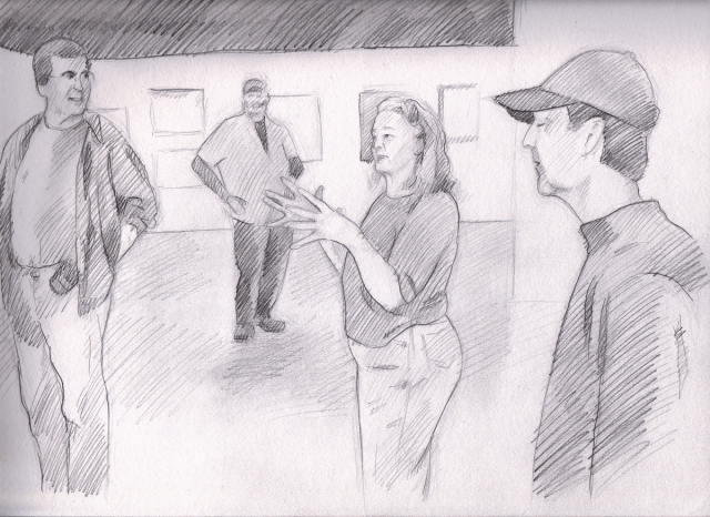 Lydia Brokaw, gallery director, helped Jon, Jason and I arrange our work.  She encouraged us to arrange our paintings and drawing in a way that told a story.  You’ll have to visit the gallery to see if we were successful.