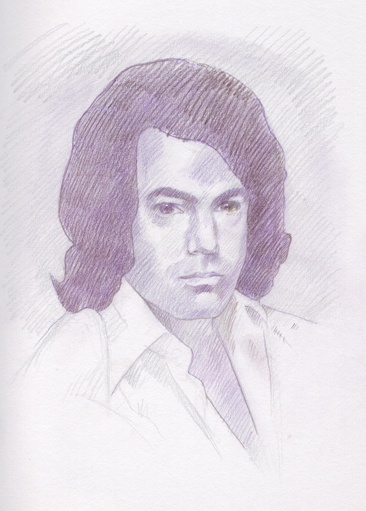 1. Ah yes – those were the days of hair! You really captured him! My kids looked at pictures of me and all the relatives in those days and their comment was – you guys sure were hairy! Again, great drawing.