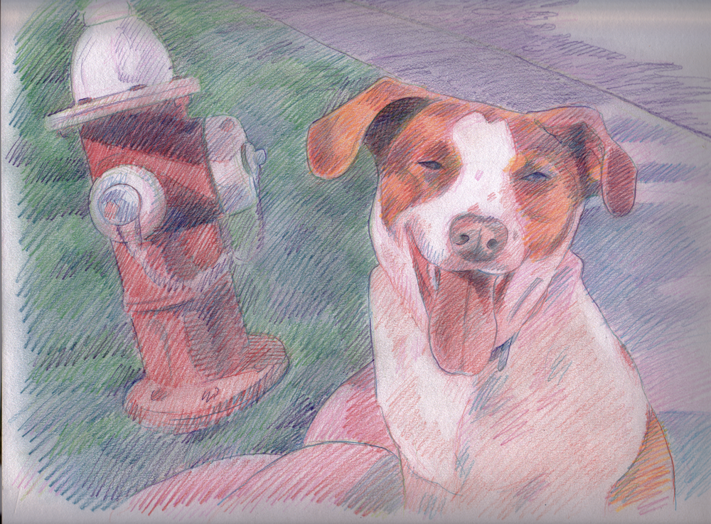 I walked Chester on Spruce Ave. A quiet street with a lot of fire hydrants.