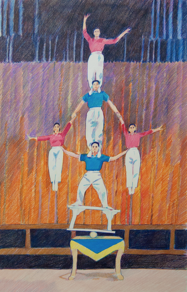 Chinese acrobats This Chinese acrobat prismacolor pencil drawing I unearthed in my recent studio spring cleaning. Share this:PostLike Loading... Related