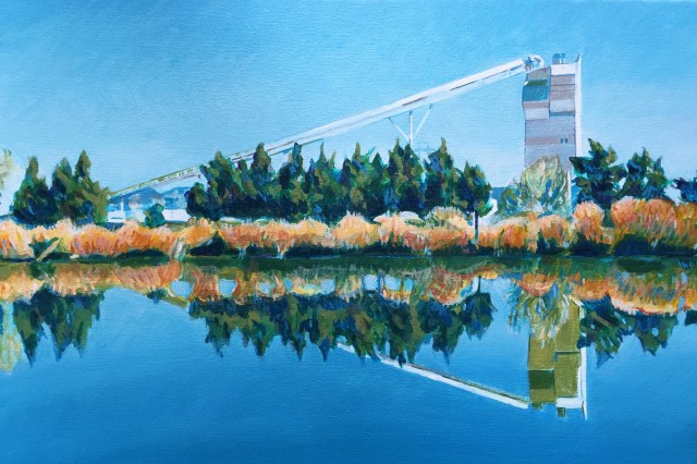 I’ve been working this painting of the St Vrain Greenway at Walton Pond. There’s a dirt path hidden between the shrubs and the tree line that’s a good place to walk Chester off leash.