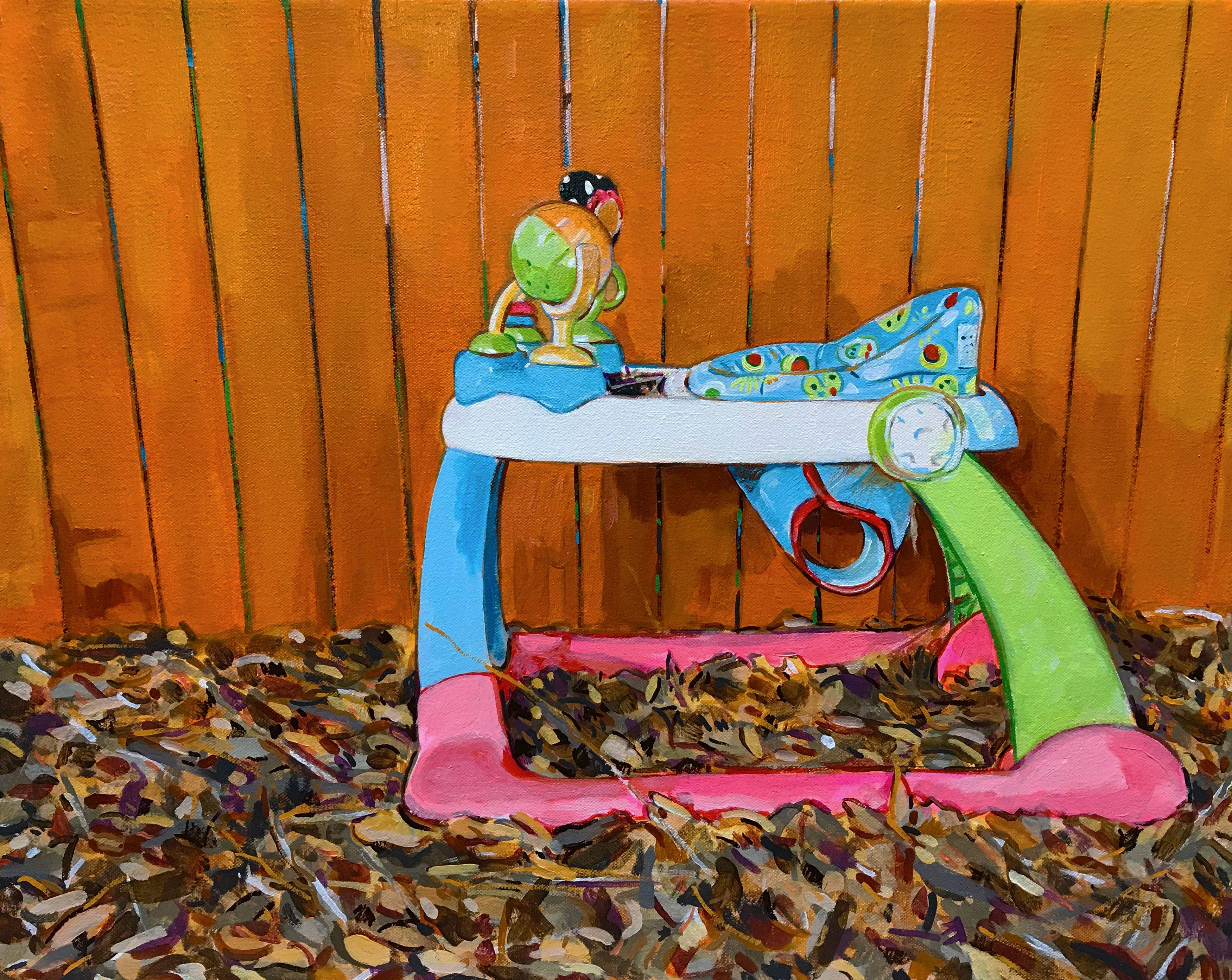 1. Interesting study, playful and sort of serious at same time.. I like the view of the fence and the sensation of space, depth, and inkling of scenes in the gaps between the slats, sort of flows forth from the texture in the foreground. All of which is backdrop hmmm, for the seat, with the lovey color.